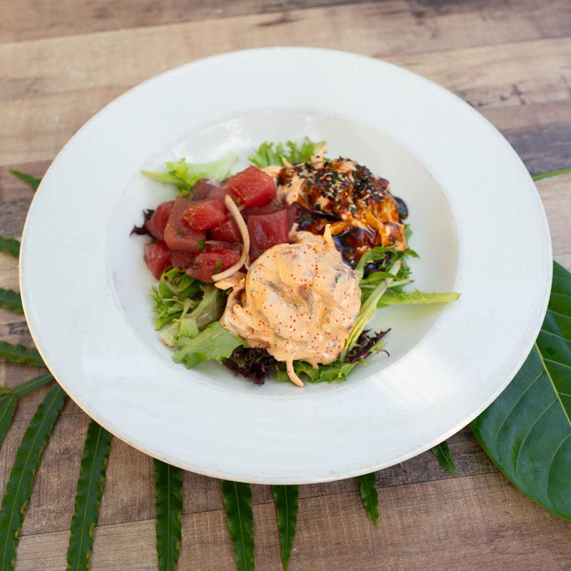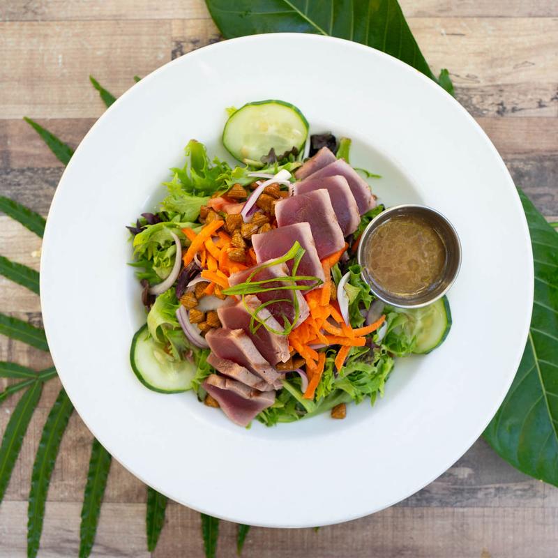 Waipoli lettuce medley, cucumber, tomato, red onion, carrot, a rare and choice of housemade dressing (Miso Balsamic, Shoyu Citrus, Kimchi Vinaigrette, or Garlic Pepper Ranch)