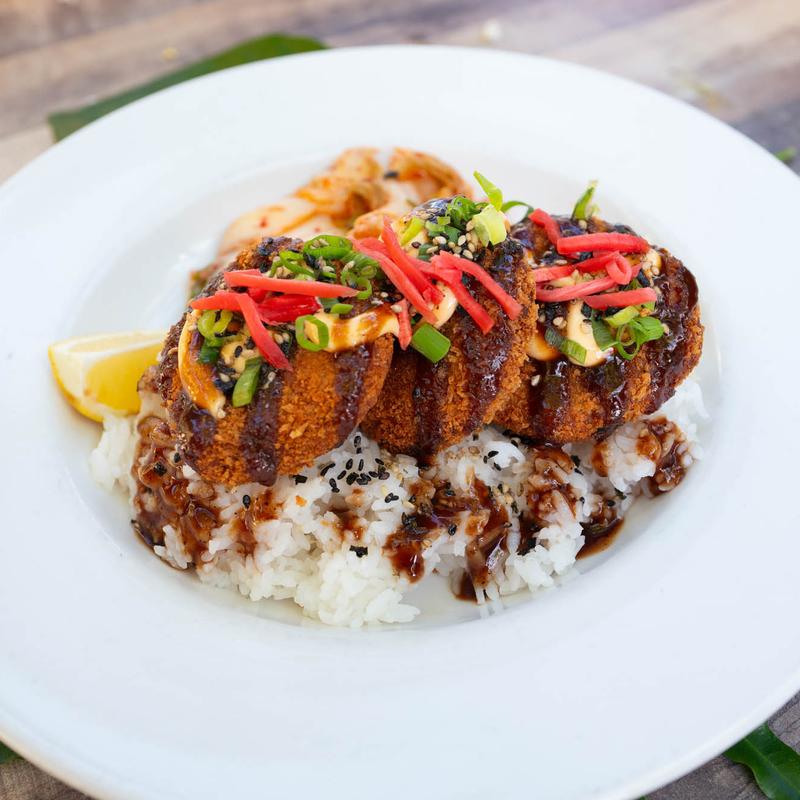 Fried mochiko chicken sautéed in garlic teriyaki sauce. Includes choice of 2 classic sides