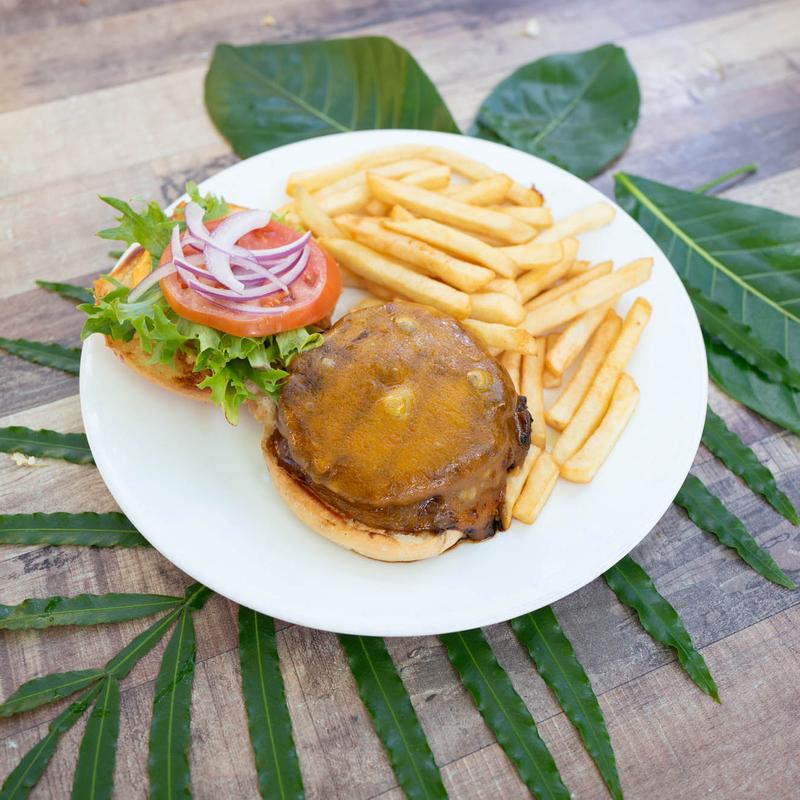 Grilled boneless chicken thigh with Jamaican inspired spices, and a local huli-huli style sauce. Includes two classic sides